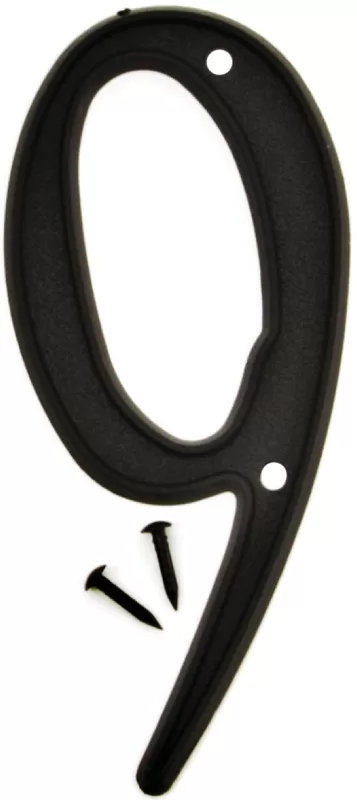Raised script numbers. Durable, weatherproof plastic. Mounting nails included.