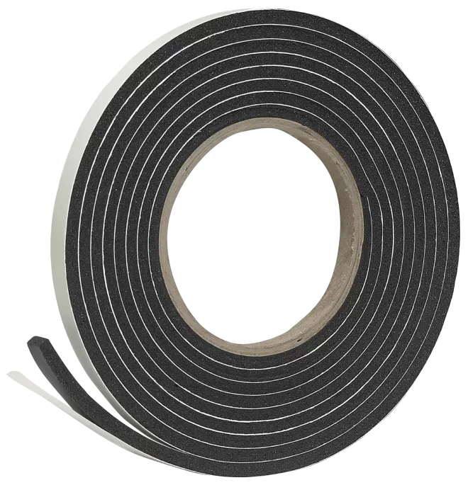 Foam Tape, 3/8 in W, 10 ft L, 3/16 in Thick, Rubber, Black. A tough, durable self-stick tape with minimal compression. Use the rubber foam weatherseal as a weatherstrip or as a gasket or to cushion and stabilize major appliances. Plus, on cars, trucks and