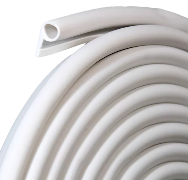 Seals out drafts, dust and weather around loose-fitting, warped or unevenly cut doors or windows. Can be nailed, stapled or glued in place.