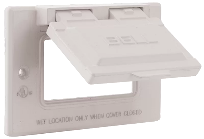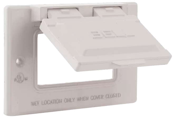 For outdoor horizontal use. Powder coat finish. Scratch-resistant. Self-closing lid assures protection when receptacle is not in use. Includes installation hardware, gasket and multi-lingual instructions. UL 514-A listed, File E 195978 C/UL CSA C22.2 No.