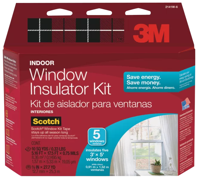 Window Insulation Kit, 0.75 in Thick, 17.5 ft L, Plastic, Clear. Window insulator kits keep cold drafts out and warm air in through heat shrink window film and Scotch window film mounting tape. 3M window kits have the clearest film.